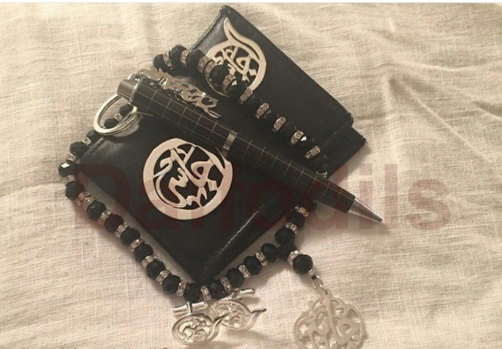 الطقم عبارة عن ميدالية و كبك و قلم و محفظة و سبحة .